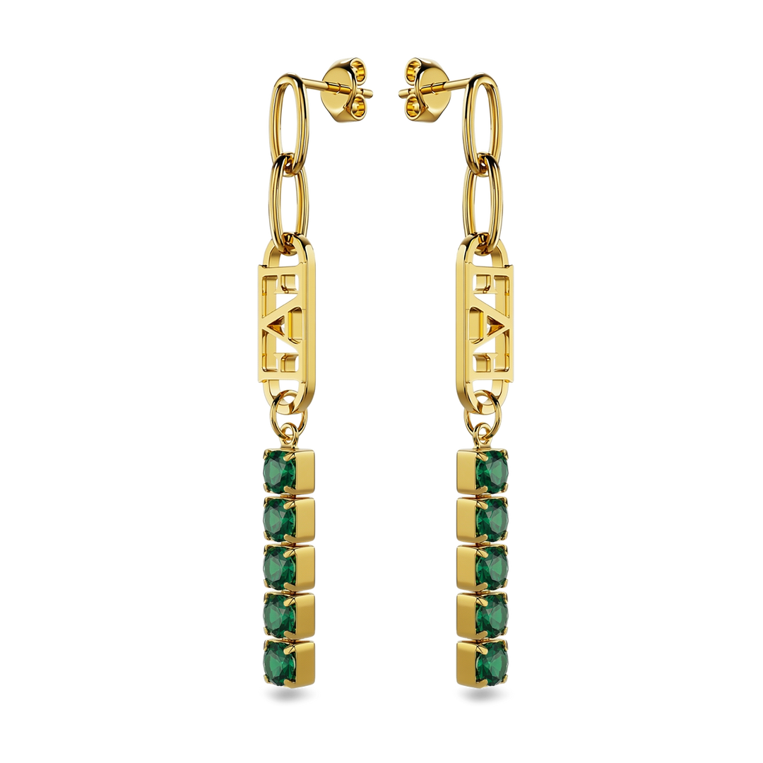 Glam Tennis Chain Earrings / Green Emerald Color.
