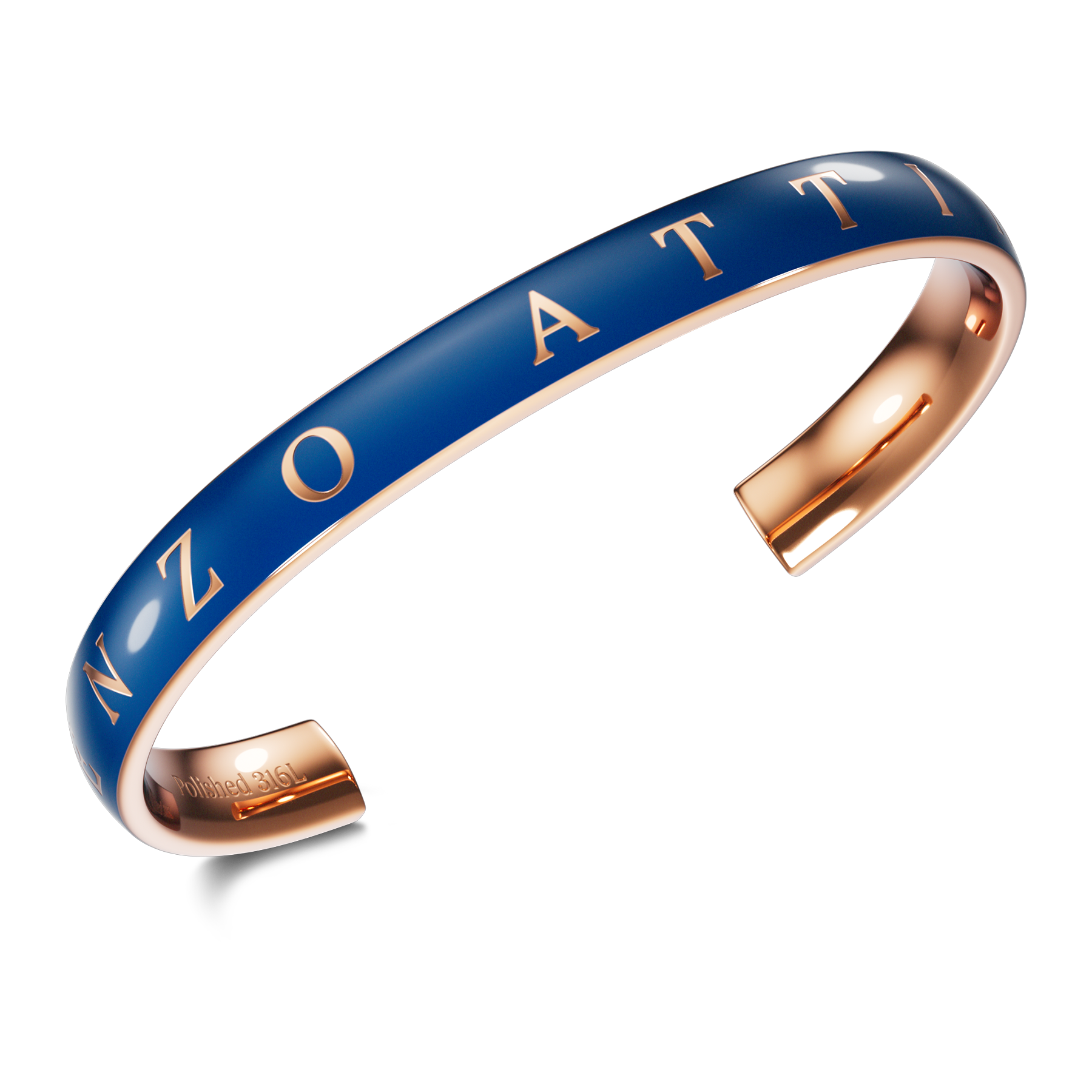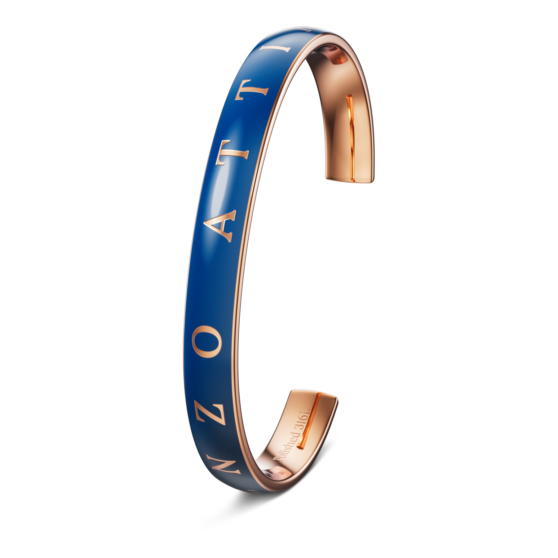 SPECIFICATIONS • Material: 316L stainless steel, imperial blue & rose gold color (plated with real 18K gold) • Available sizes (inner dimensions): S: 42 mm × 57 mm × 155 mm M: 46 mm × 63 mm × 175 mm L: 51 mm × 70 mm × 195 mm • Customization: Complimentary engraving available upon request • Packaging: Comes in premium packaging, perfect for gifting • Warranty: 1-year international warranty