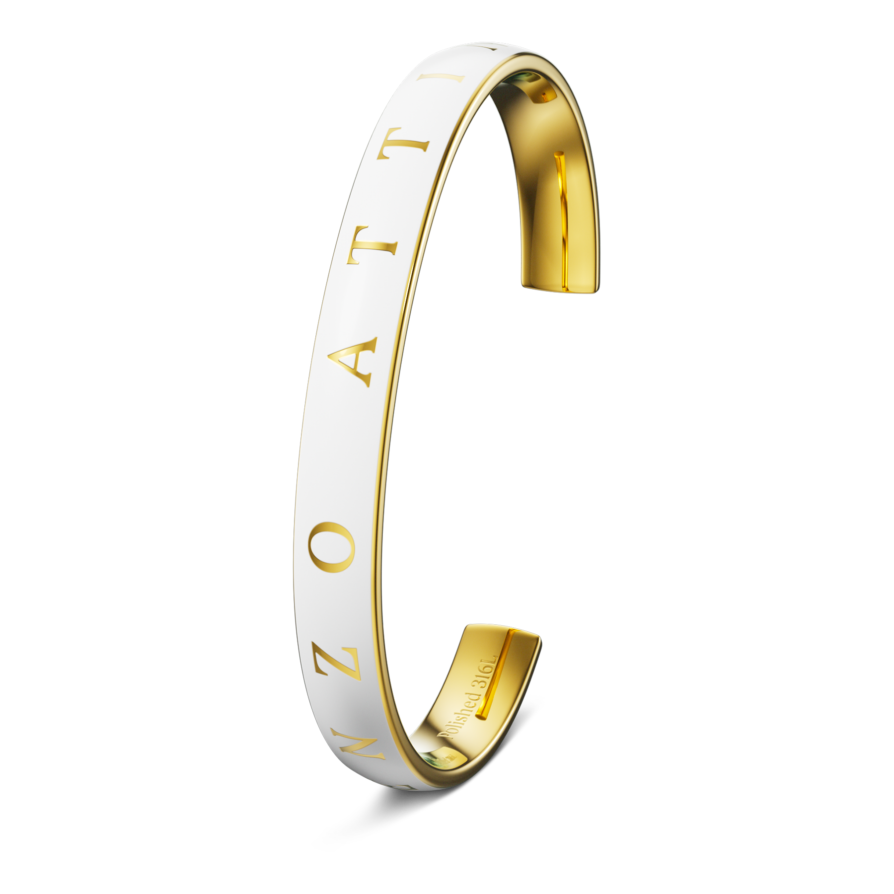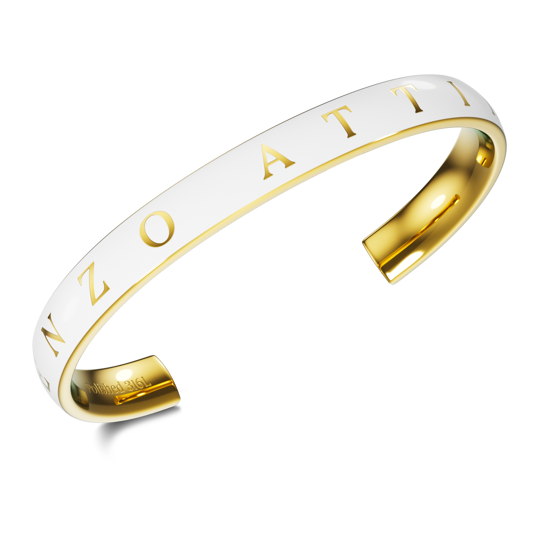 SPECIFICATIONS • Material: 316L stainless steel, white & gold color (plated with real 18K gold) • Available sizes (inner dimensions): S: 42 mm × 57 mm × 155 mm M: 46 mm × 63 mm × 175 mm L: 51 mm × 70 mm × 195 mm • Customization: Complimentary engraving available upon request • Packaging: Comes in premium packaging, perfect for gifting • Warranty: 1-year international warranty