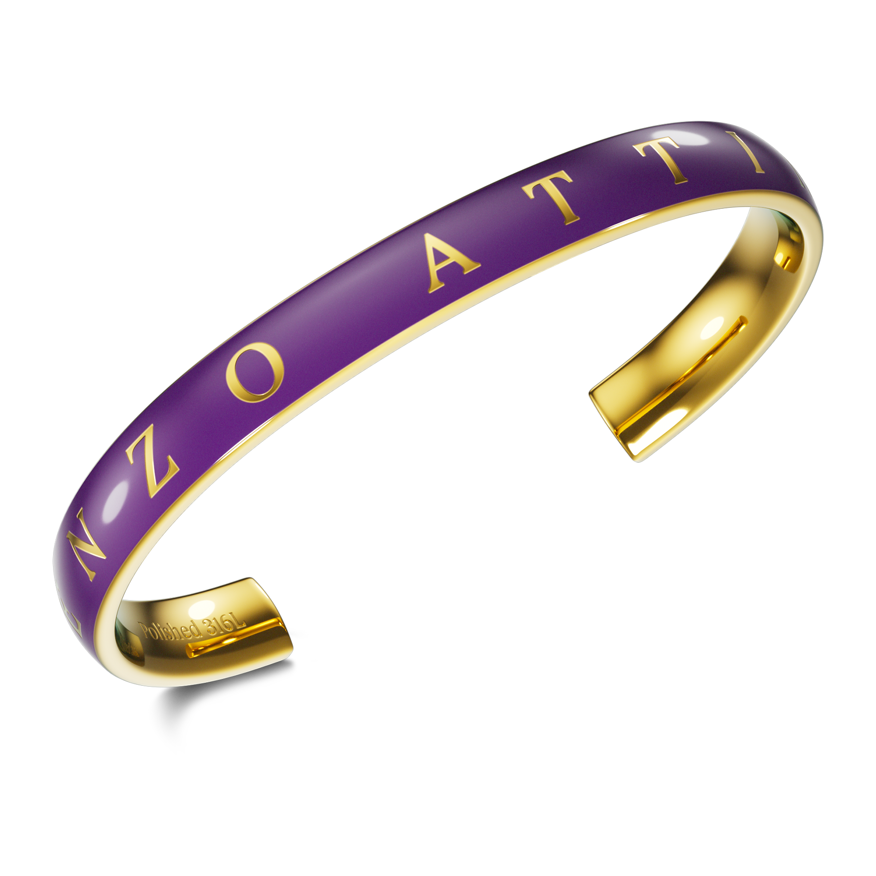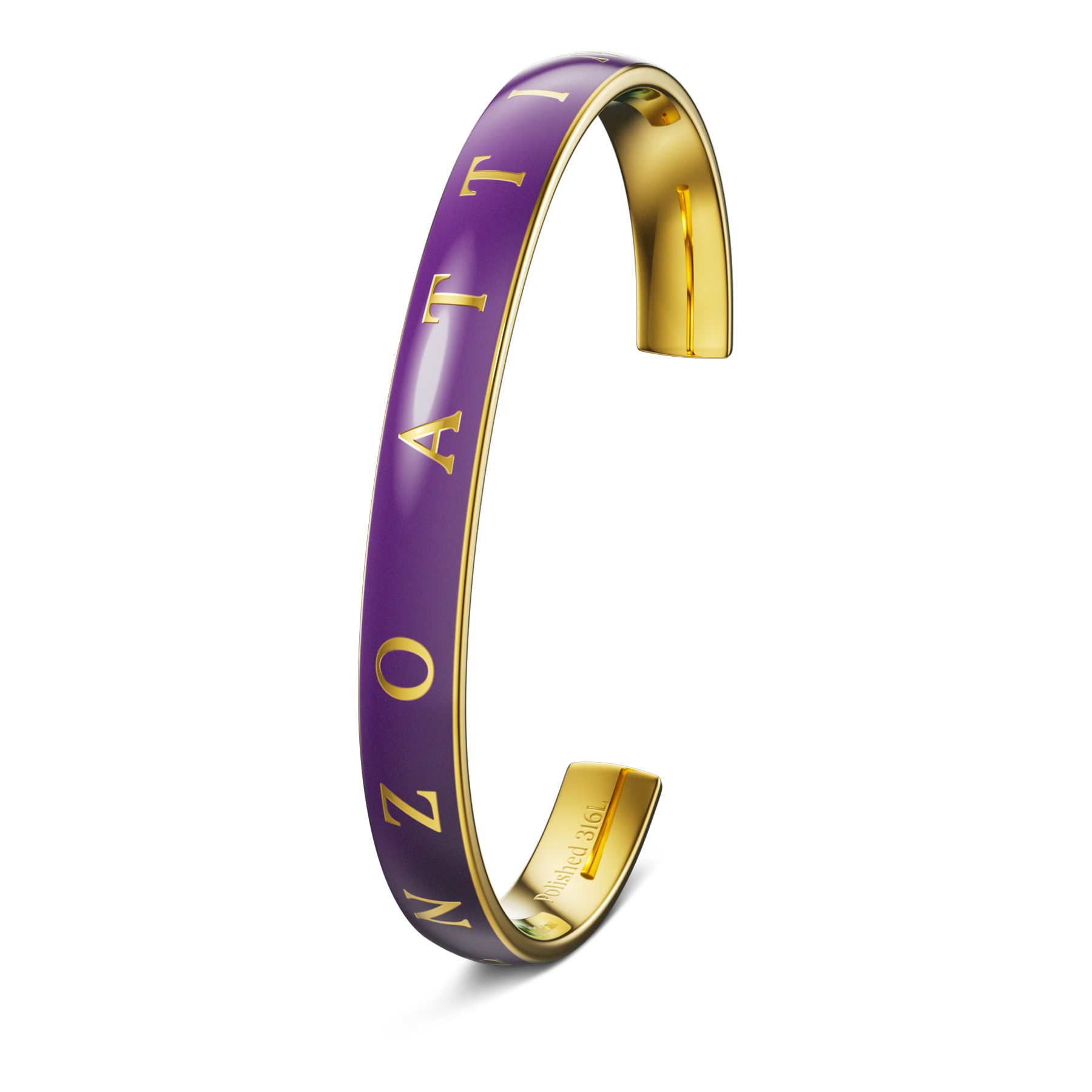 SPECIFICATIONS • Material: 316L stainless steel, purple & gold color (plated with real 18K gold) • Available sizes (inner dimensions): S: 42 mm × 57 mm × 155 mm M: 46 mm × 63 mm × 175 mm L: 51 mm × 70 mm × 195 mm • Customization: Complimentary engraving available upon request • Packaging: Comes in premium packaging, perfect for gifting • Warranty: 1-year international warranty