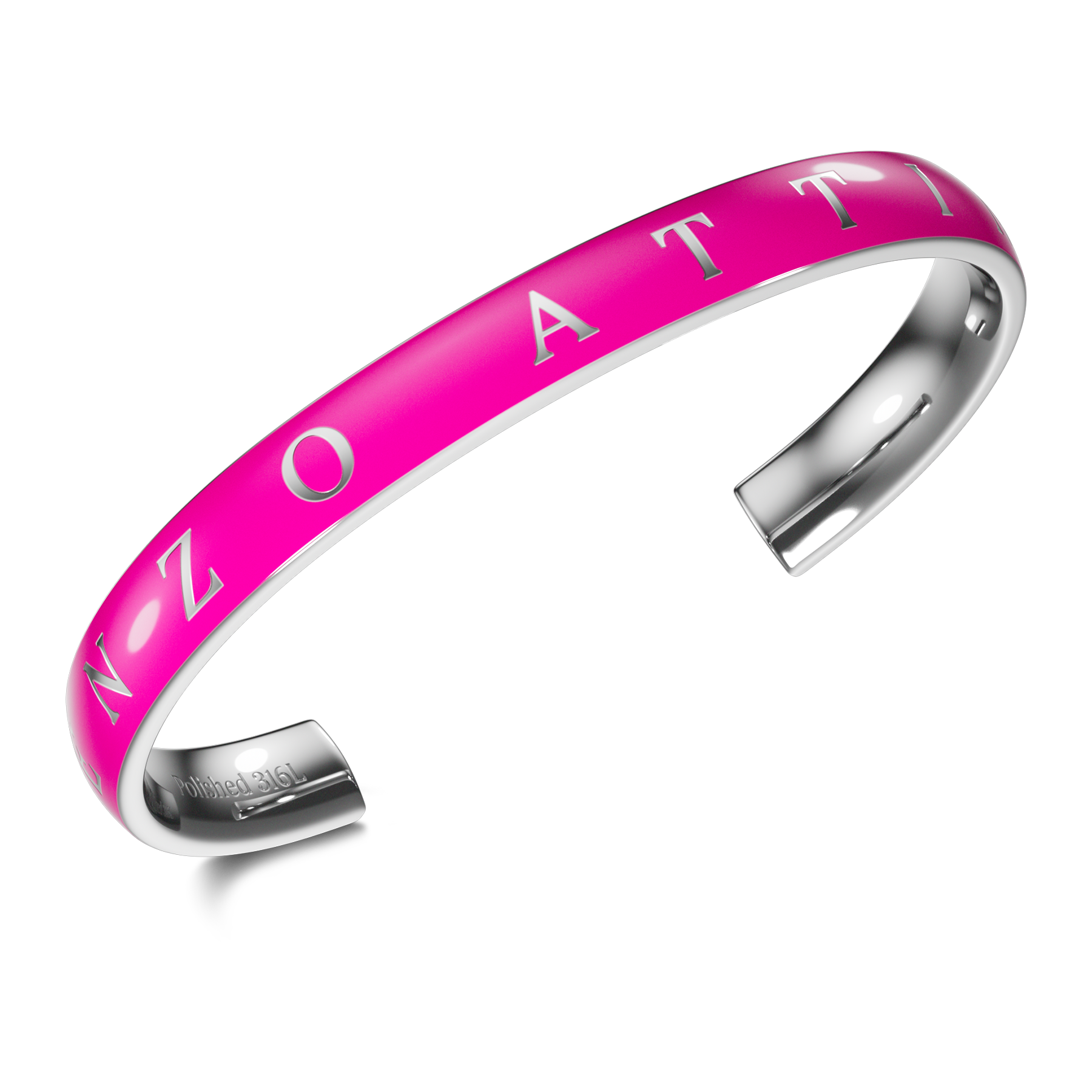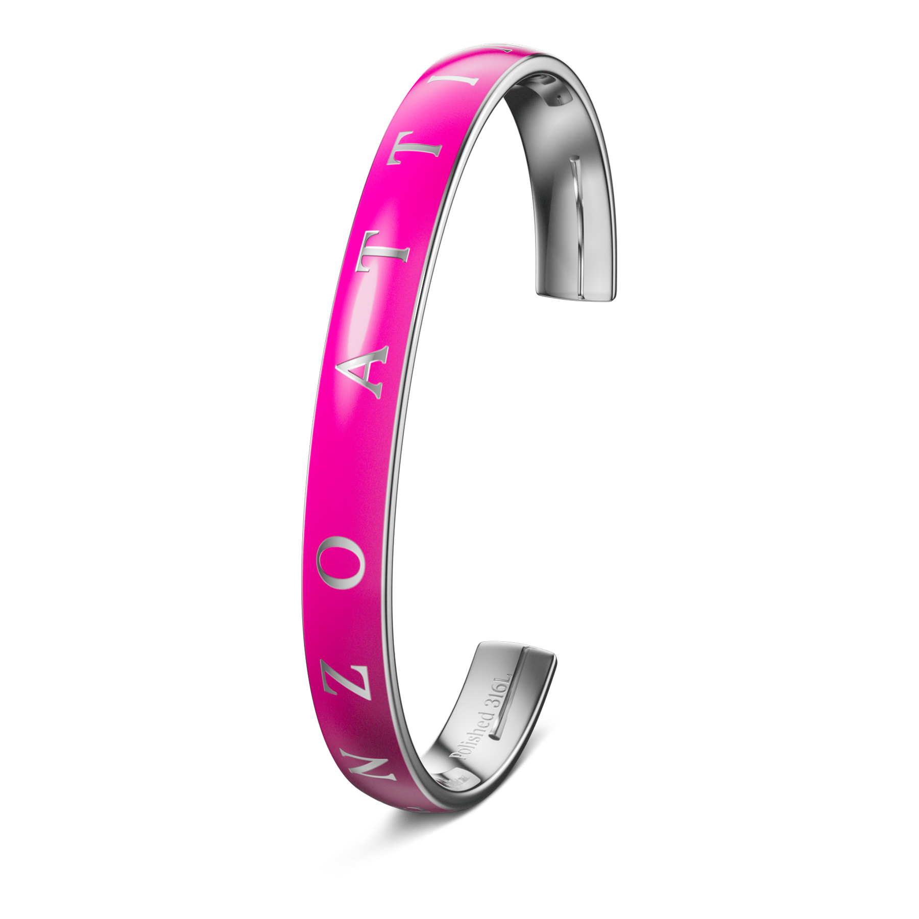 SPECIFICATIONS • Material: 316L stainless steel, fuchsia pink & silver color • Available sizes (inner dimensions): S: 42 mm × 57 mm × 155 mm M: 46 mm × 63 mm × 175 mm L: 51 mm × 70 mm × 195 mm • Customization: Complimentary engraving available upon request • Packaging: Comes in premium packaging, perfect for gifting • Warranty: 1-year international warranty