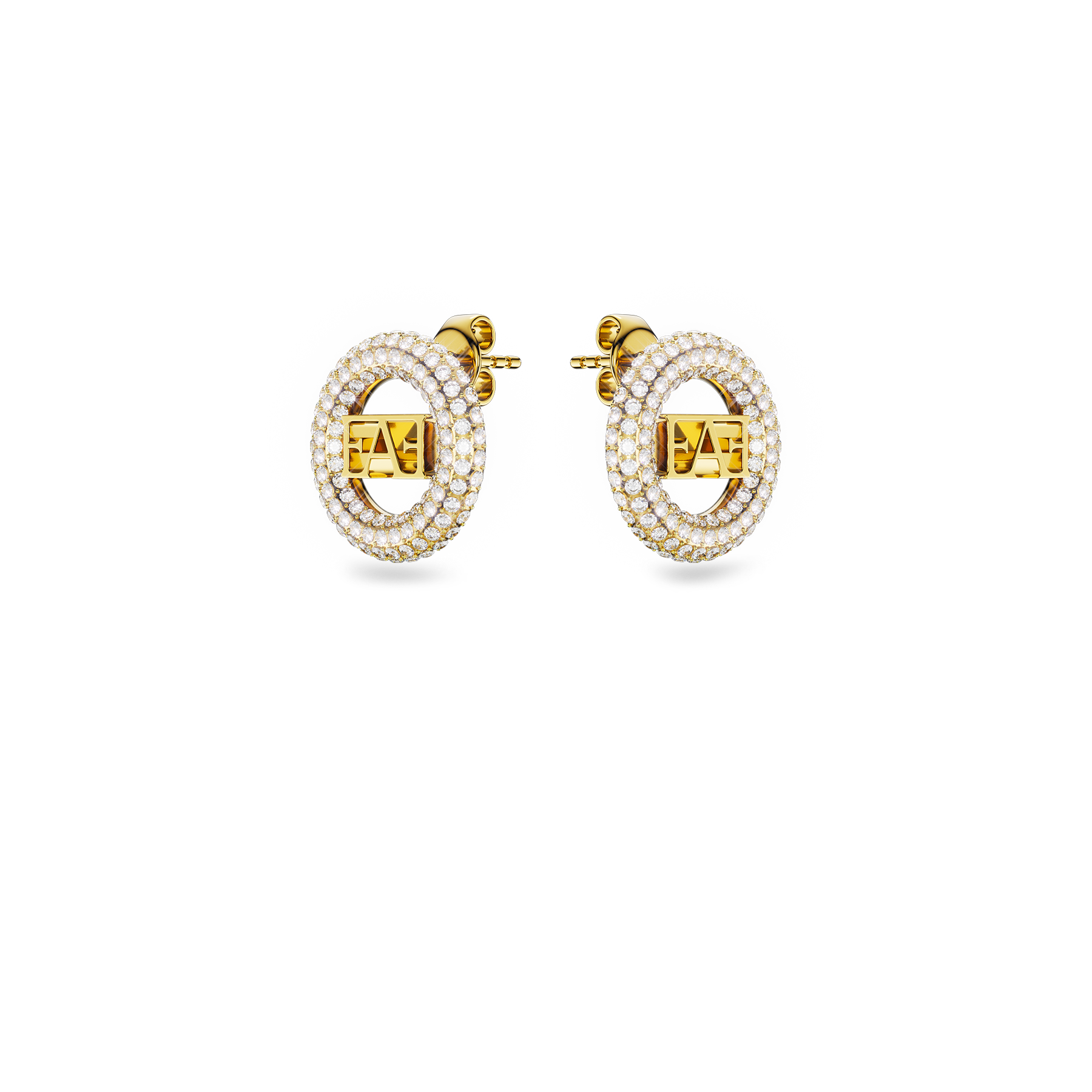 • Design: Stone-set earrings featuring the Enzo Attini logo