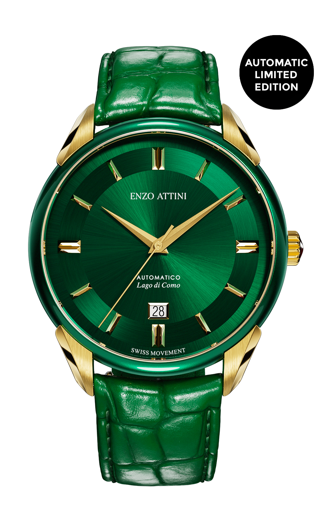 • Case: Stainless steel 316L, green & gold color (plated with genuine 18K gold), 40mm x 10.4mm.