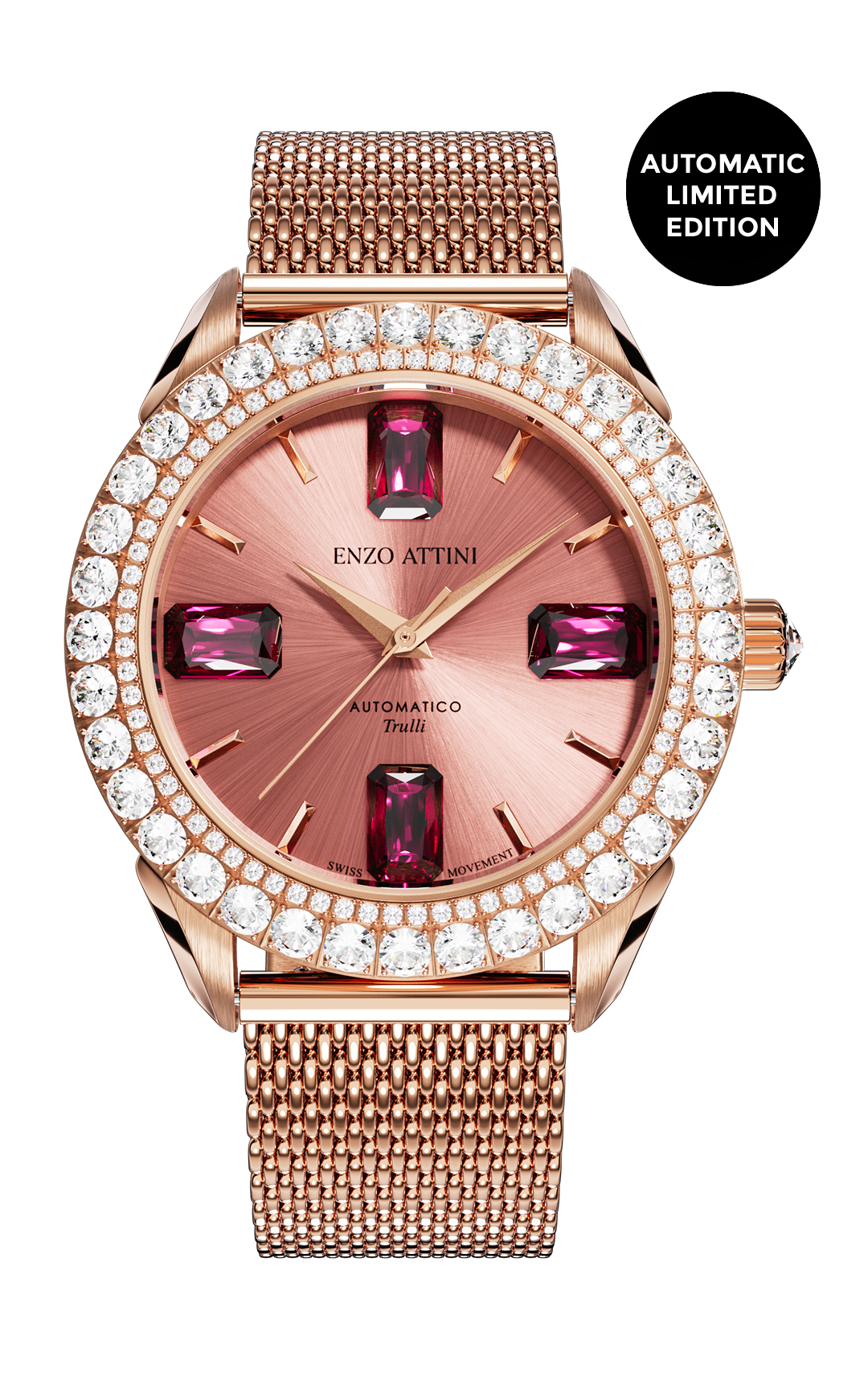 GEMS • Bezel: 72 small white zirconia & 36 big white zirconia • Dial: 4 emeralds, 0.49 Ct each • Crown: 1 white zirconia