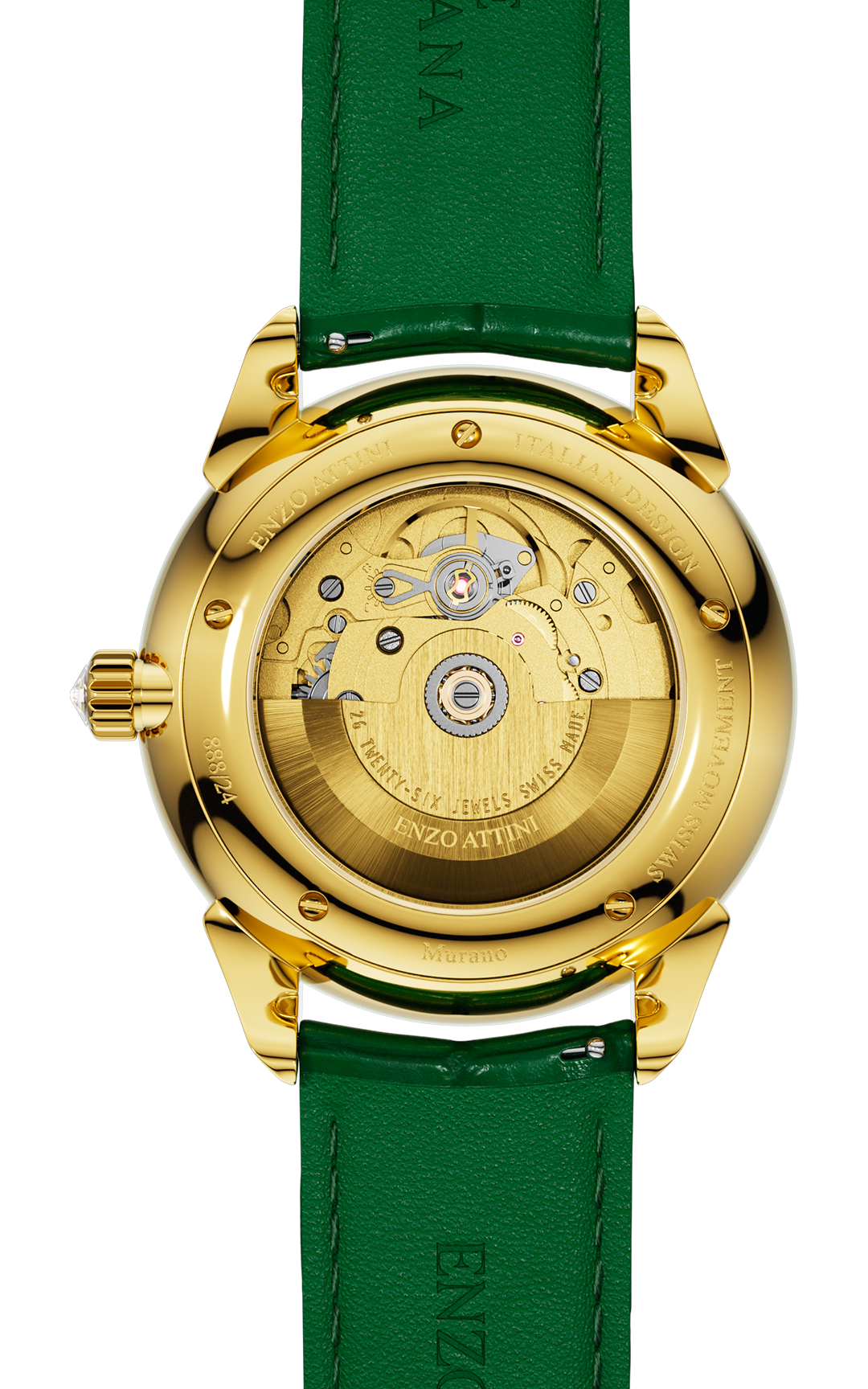 • Movement: Swiss-made automatic mechanical movement, 28,800 A/h (4 Hz) frequency, 38-hour power reserve, 26 jewels.