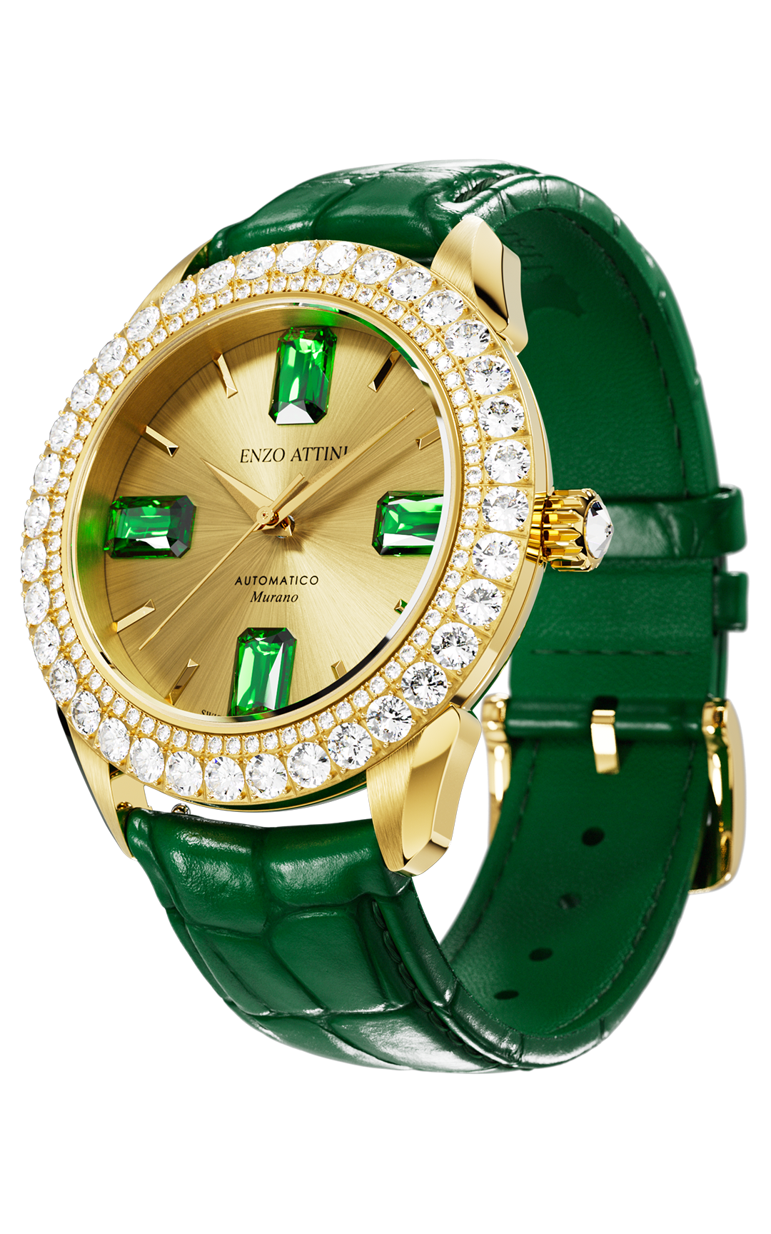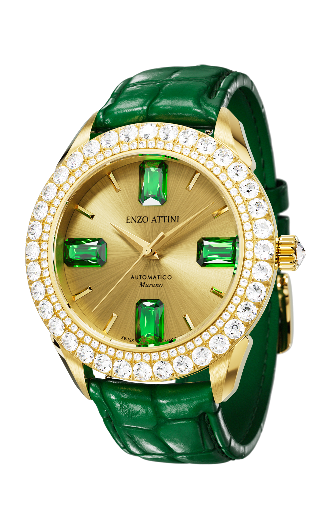GEMS• Bezel: 72 small white zirconia & 36 big white zirconia• Dial: 4 emeralds, 0.49 Ct each• Crown: 1 white zirconia• Warranty: 2-year international warranty.