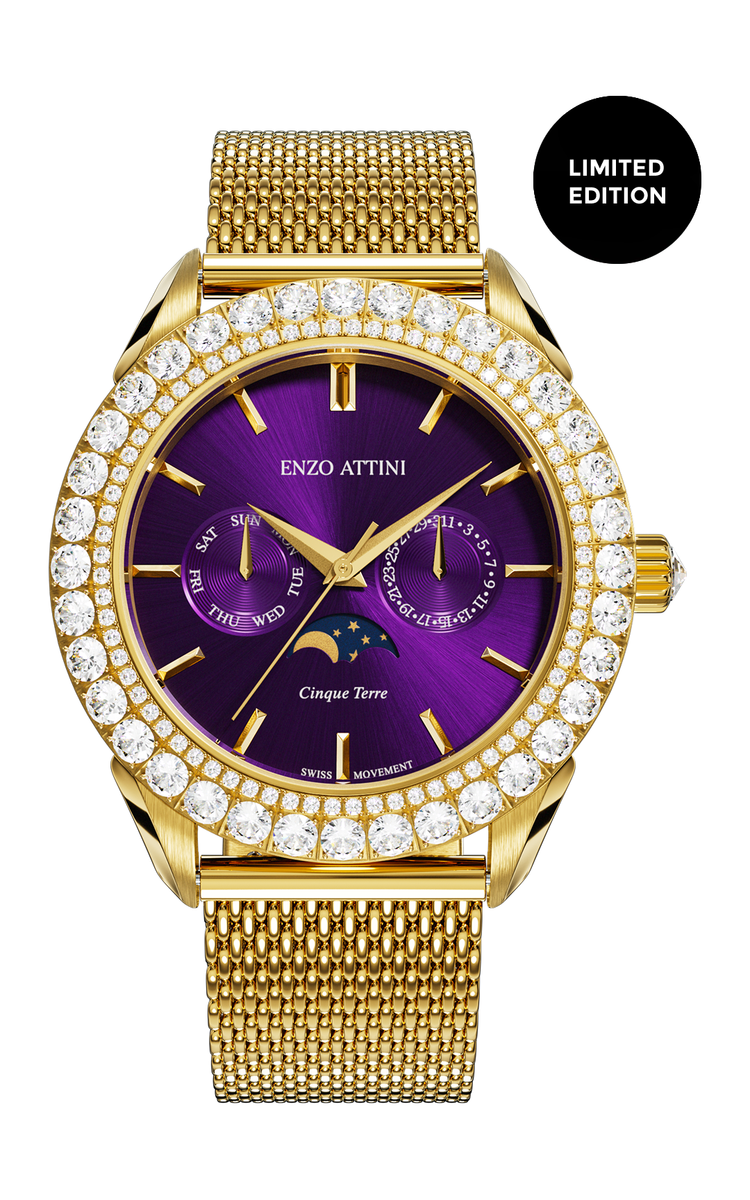 GEMS • Bezel: 72 small white zirconia & 36 big white zirconia • Crown: 1 white zirconia