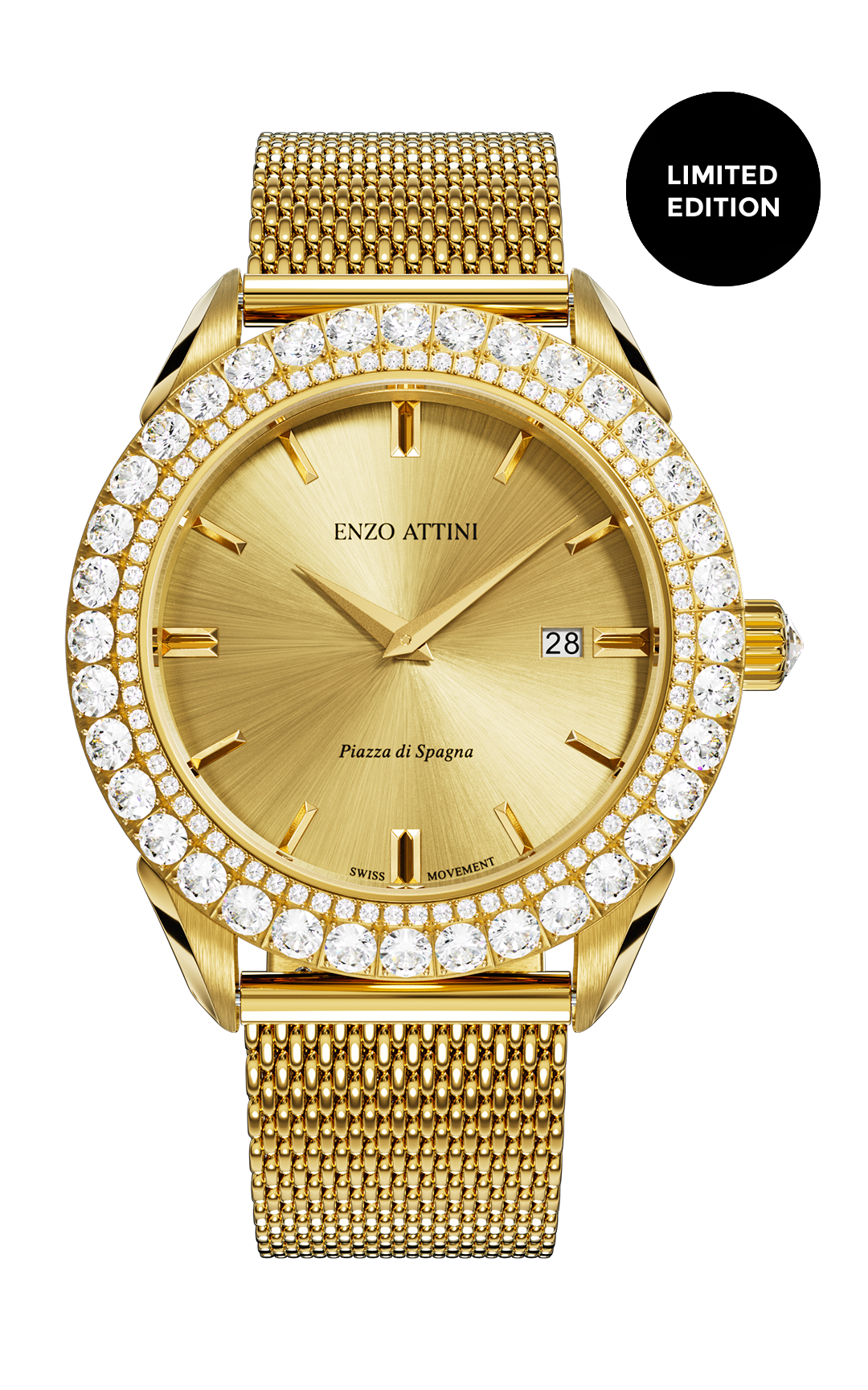 •Mesh Strap: Stainless steel 316L, rose gold color (plated with genuine 18K gold), one size fits all. • Box: Certificate of Authenticity with unique serial number. Premium packaging. Box dimensions: 205 x 145 x 120mm.