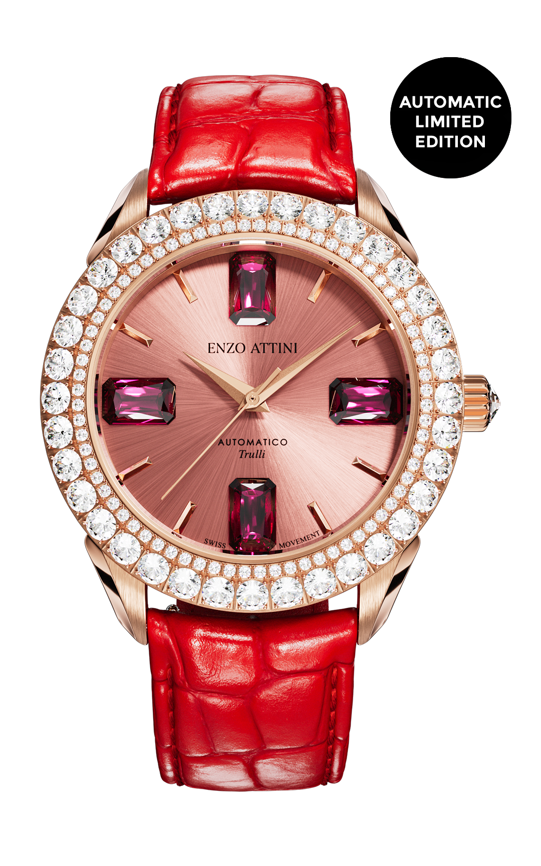• Strap: Italian leather strap (croc pattern), red color, 20mm x 18mm, adjustable to fit wrists from 14 to 23cm.