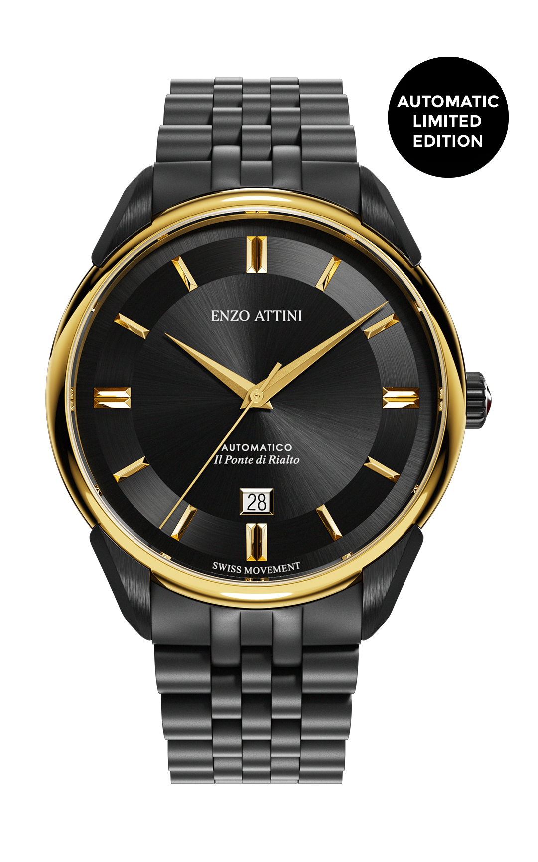 • Water Resistance: Up to 5 ATM. •Mesh Strap: Stainless steel 316L, gold color (plated with genuine 18K gold), one size fits all. • Box: Certificate of Authenticity with unique serial number. Premium packaging. Box dimensions: 205 x 145 x 120mm.
