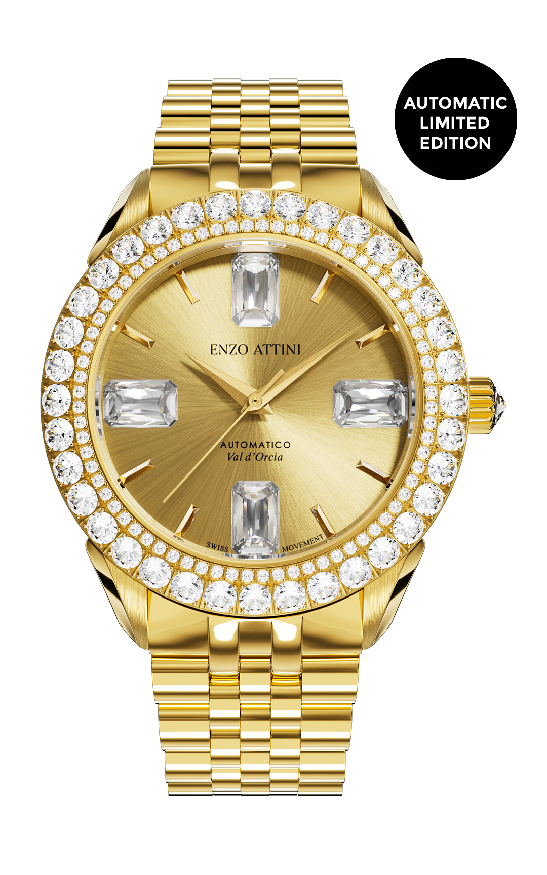 GEMS• Bezel: 72 small white zirconia & 36 big white zirconia• Crown: 1 white zirconia
