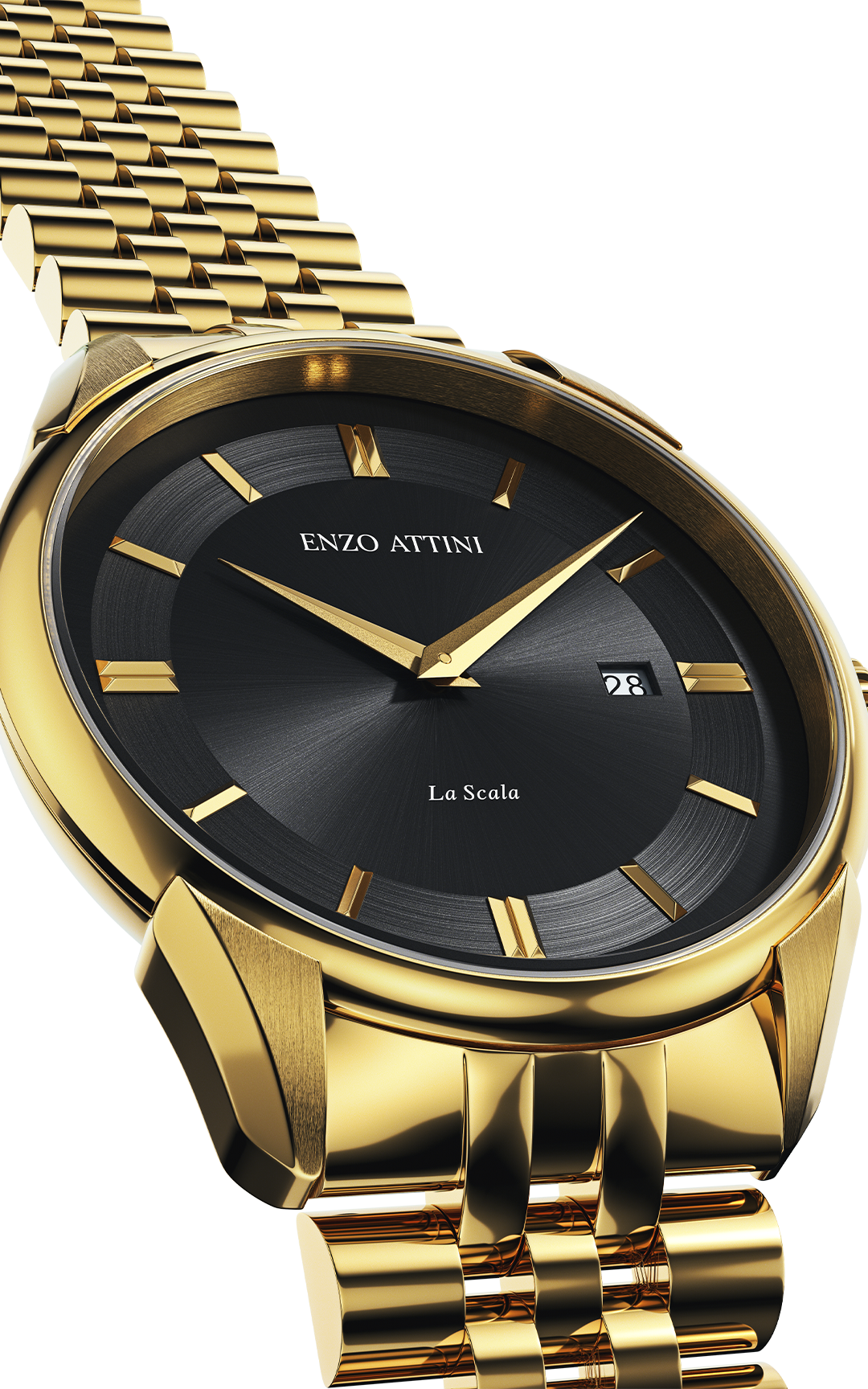 Case: Stainless steel 316L, gold color (plated with genuine 18K gold), 40mm x 8.9mm.