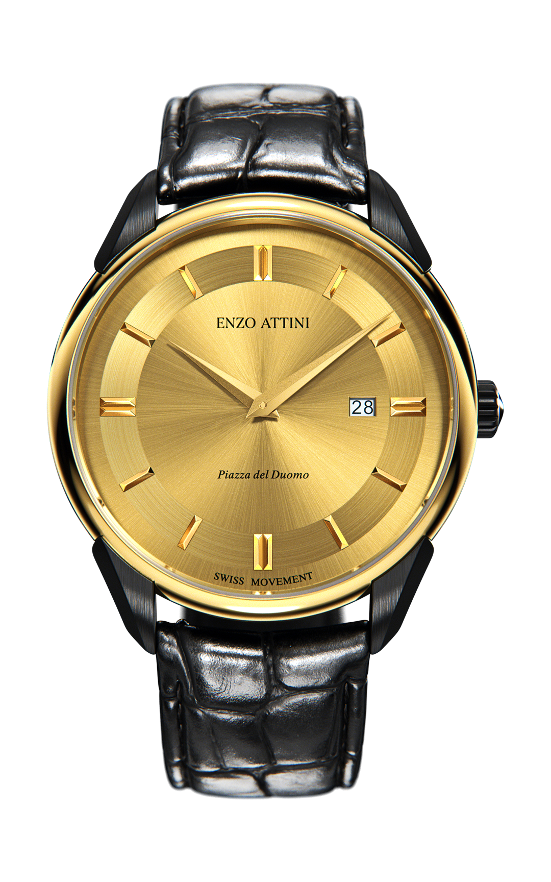 SPECIFICATIONS • Case: Stainless steel 316L, gold color (plated with genuine 18K gold), 40mm x 8.9mm. • Crystal: Sapphire glass with anti-reflective treatment. • Dial: Copper, hand-applied polished markers. • Movement: Swiss-made quartz, 5 jewels. • Functions: Hours, minutes and date. • Water Resistance: 5 ATM. • President Bracelet: Stainless steel 316L, gold & black color (plated with genuine 18K gold), fits wrists up to 22 cm. • Box: Certificate of Authenticity with unique serial number. Premium packaging. Box dimensions: 115 x 115 x 95mm. • Warranty: 2-year international warranty.