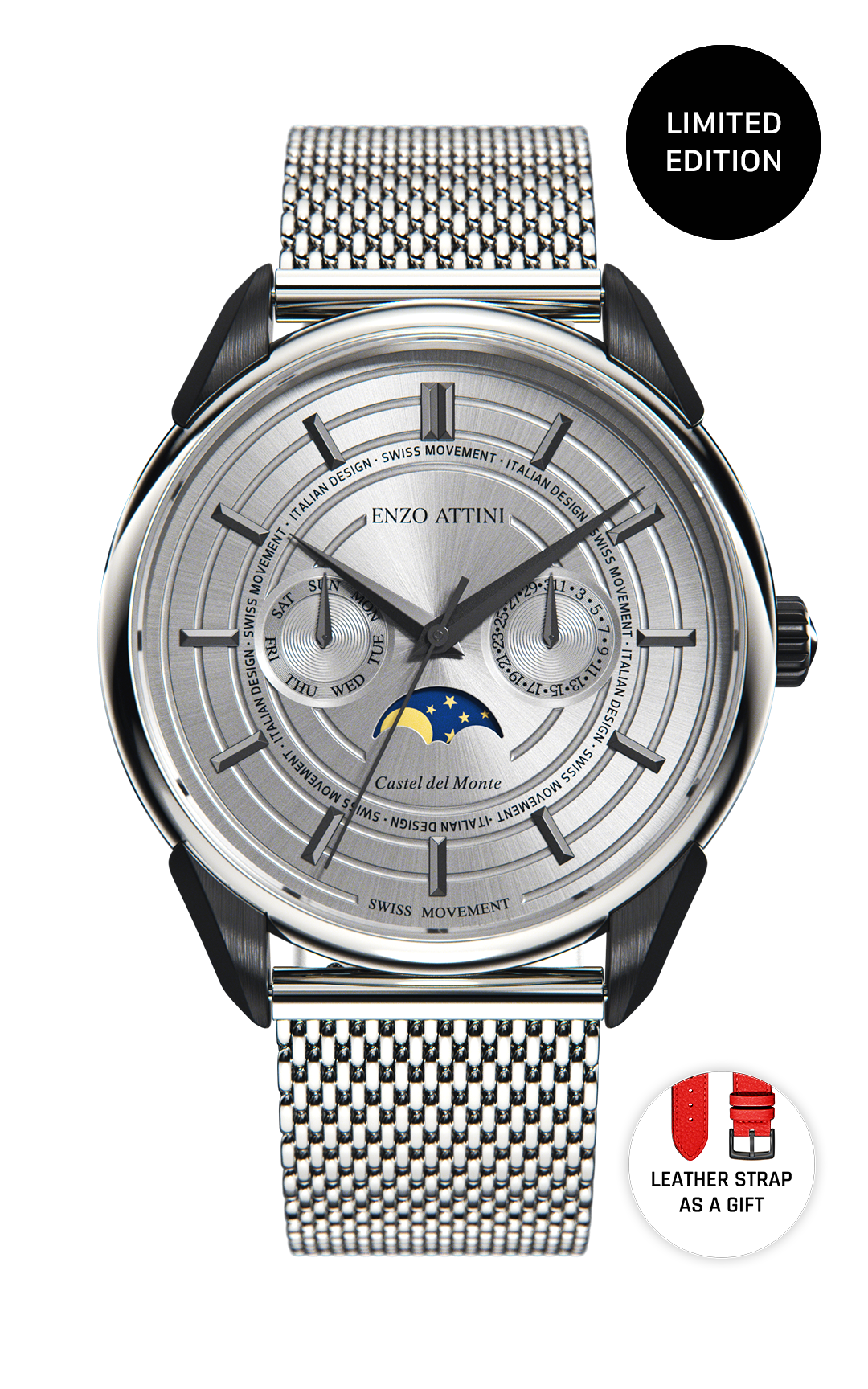 SPECIFICATIONS • Case: Stainless steel 316L, gold color (plated with genuine 18K gold), 40mm x 8.9mm. • Crystal: Sapphire glass with anti-reflective treatment. • Dial: Copper, hand-applied polished markers. • Movement: Swiss-made quartz, 5 jewels. • Functions: Hours, minutes and date. • Water Resistance: 5 ATM. • Straps: The watch comes with a mesh strap already in place, stainless steel 316L, gold color (plated with genuine 18K gold), adjustable size - fits all wrists. • Inside the Box: Certificate of Authenticity with a unique serial number. Premium packaging. Box dimensions: 115 x 115 x 95mm. • Warranty: 2-year international warranty.