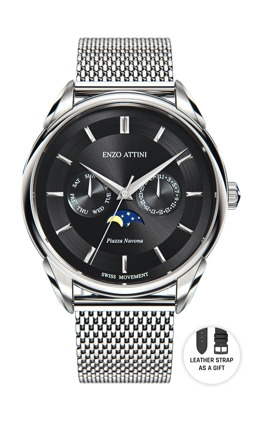 Functions: Hours, minutes, date, month and moonphase at 6 o’clock.