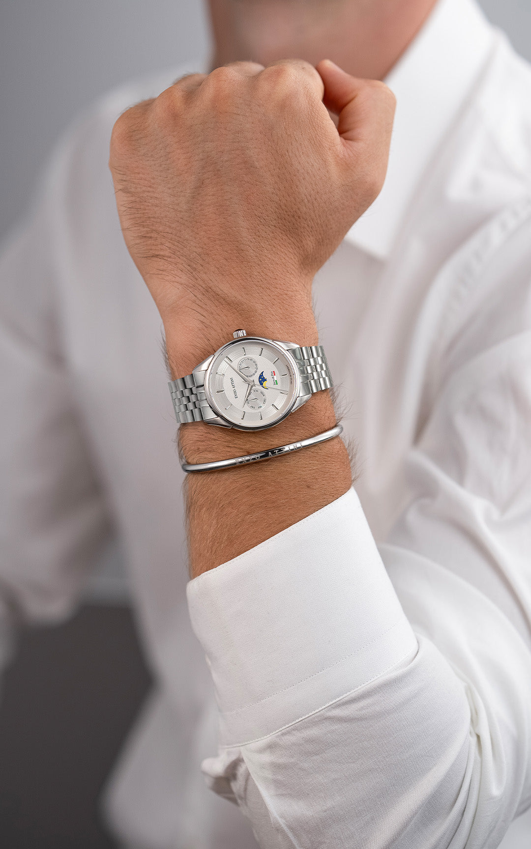President Bracelet: Stainless steel 316L, silver color, fits wrists up to 22 cm.
