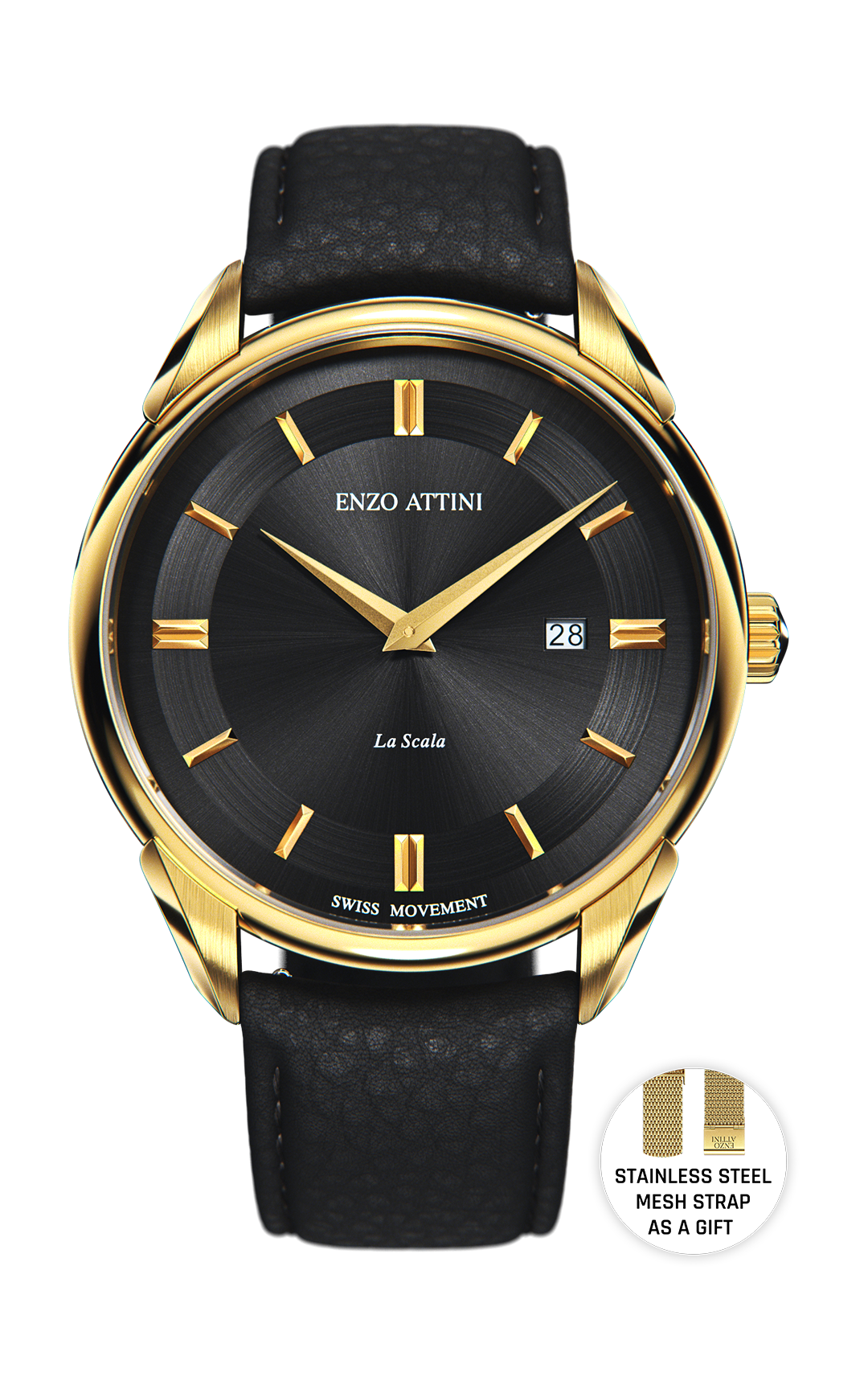 SPECIFICATIONS • Case: Stainless steel 316L, rose gold color (plated with genuine 18K gold), 40mm x 8.9mm. • Crystal: Sapphire glass with anti-reflective treatment. • Dial: Copper, hand-applied polished markers. • Movement: Swiss-made quartz, 5 jewels. • Functions: Hours, minutes and date. • Water Resistance: 5 ATM. • President Bracelet: Stainless steel 316L, silver & rose gold color (plated with genuine 18K gold), fits wrists up to 22 cm. • Box: Certificate of Authenticity with unique serial number. Premium packaging. Box dimensions: 115 x 115 x 95mm. • Warranty: 2-year international warranty.