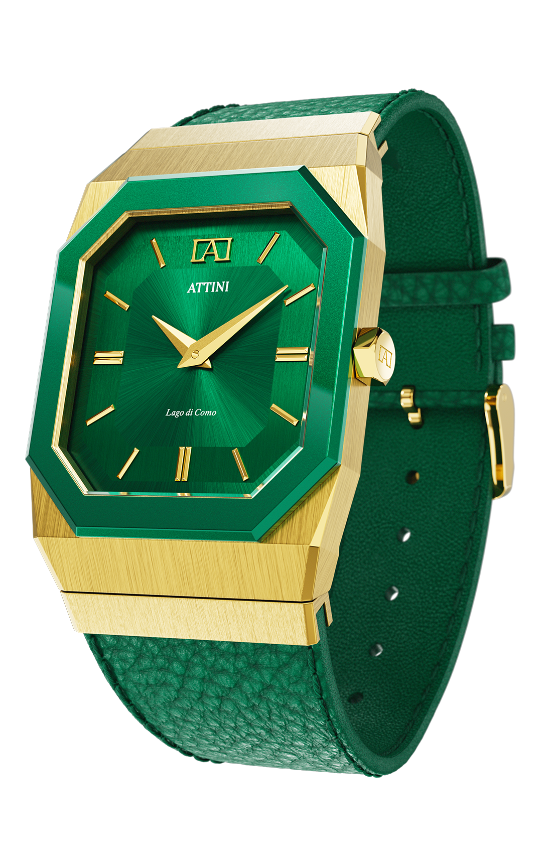 SPECIFICHE •Cassa:Acciaio inossidabile 316L,verde ecolor oro (placcato con vero oro 18K), 37mm x7,9mm. •Vetro:Vetro zaffiro con trattamento antiriflesso. •Quadrante:Rame, indici lucidati applicati a mano. •Movimento:quarzo di fabbricazione svizzera, 5 rubini. •Funzioni:Oreeminuti. •Resistenza all'acqua:5 ATM. • Cinturino:cinturino in pelle italiana , colore verde, 28,5 mm x 20 mm, ideale per polsi da 16-26 cm. •Scatola:Certificato di autenticità con numero di serie univoco. Confezione premium. Dimensioni della scatola:140x 105 x75 mm. • Garanzia:garanzia internazionale di 2 anni.